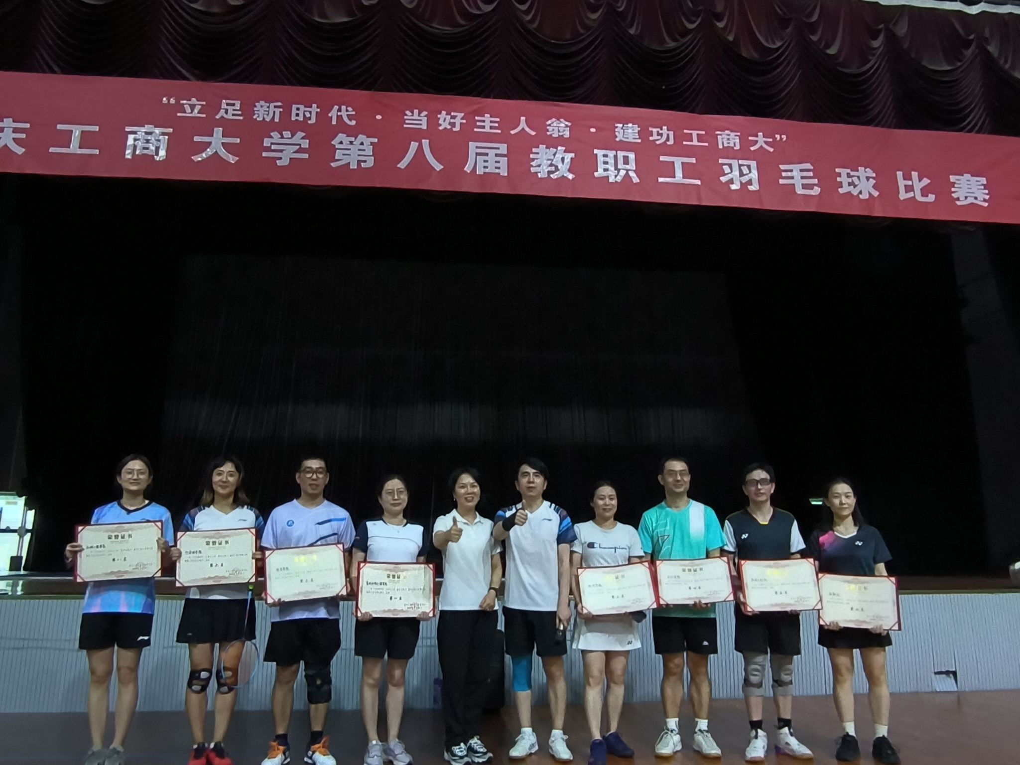 17318484270 为进一步活跃重庆工商大学教职工的业余文化氛围,激发大家以更加饱满的热情和强健的体魄投身于教育教学与科研工作。2025年9月25日,重庆工商大学“立足新时代·当好主人翁·建功工商大”第八届教职工羽毛球比赛在南岸校区体艺馆顺利举行。
