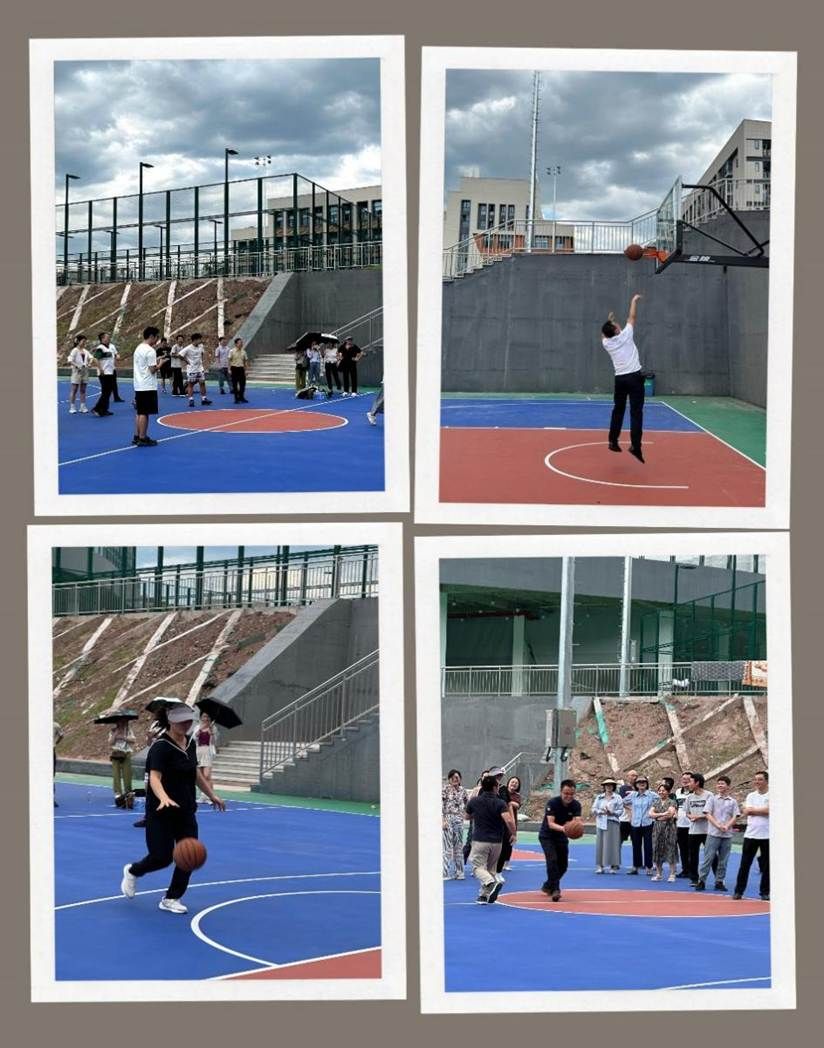 在茶园新校区,工商管理学院与机械学院首先开展了“篮球运球上篮”友谊赛,比赛中,老师们精神饱满,默契配合,持球推进,跨步上篮,动作一气呵成,现场气氛热烈。比赛结束后,在机械学院党政领导和老师的精心引导下,学院教职工依次参观了茶园新校区的教学楼、运动场、食堂、一站式公寓等。参观途中,老师们频频驻足交流,围绕新校区教学资源优化整合、科研团队协同合作等议题交流讨论,拉近了彼此的距离,增进了友谊,提升了凝聚力。