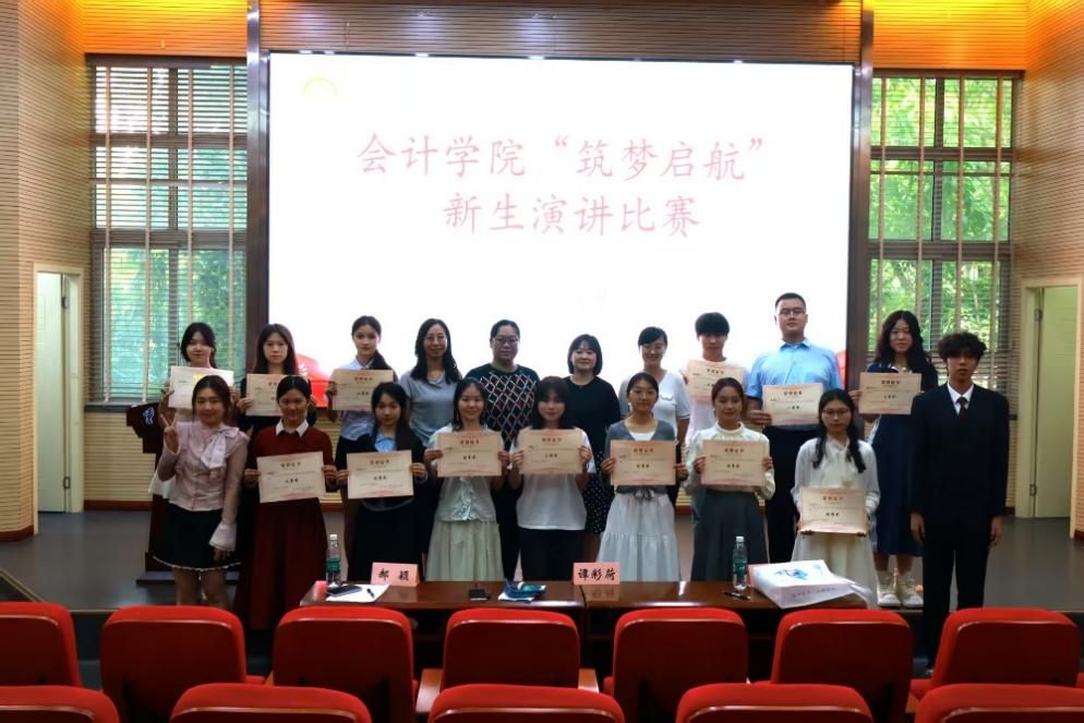 比赛现场气氛热烈,扣人心弦。各班选手各展风采、激情昂扬,纷纷结合自身经历,表达对未来的期待。会计四班蒋欣怡同学围绕进入大学后的思想转变,分享了对未来大学生活的规划;会计五班王祖姣同学则以亲身经历阐述了大学与高中的区别,助力同学们更好地适应大学生活。经过激烈角逐,最终,来自会计三班的张国立同学凭借其演讲《青春筑梦:从大学启航,书写时代华章》中真挚的情感和极具感染力的表达,一举夺魁。