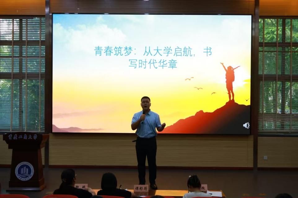 17318484270 10月9号下午,会计学院“筑梦启航”2025级新生演讲比赛在兰花湖学术报告厅举办。本次赛事旨在教育引导青年学子牢记习近平总书记殷殷嘱托,立报国强国大志向,做挺膺担当的奋斗者。重庆工商大学会计学院院长钟廷勇、党委学生工作部副部长谭彩荷、团委副书记王微和会计学院党委副书记郝颖担任此次比赛的评委老师。