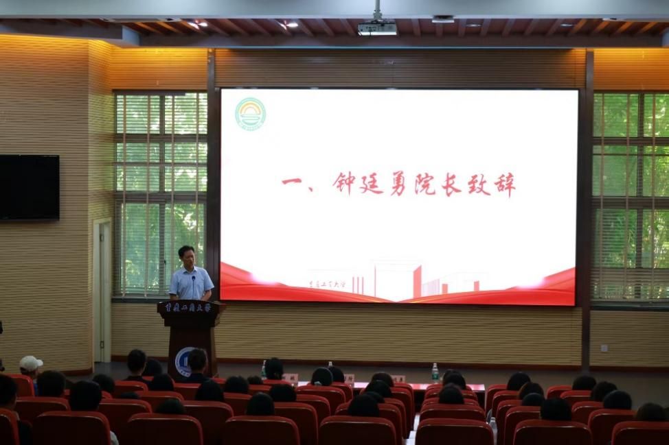 决赛伊始,院长钟廷勇致辞,他表示:今日我们用语言表达对未来的期盼,明日将以自信之姿展现重庆工商大学学子的风采。他寄予学生们成为行业“望远镜”、“显微镜”与“多能镜”的期望,鼓励学生们“抬头仰望星空,跨步脚踏实地,心怀天下”,努力成长为跨界融合的会计人才,不断积聚综合素养,将个人理想融入国家担当。