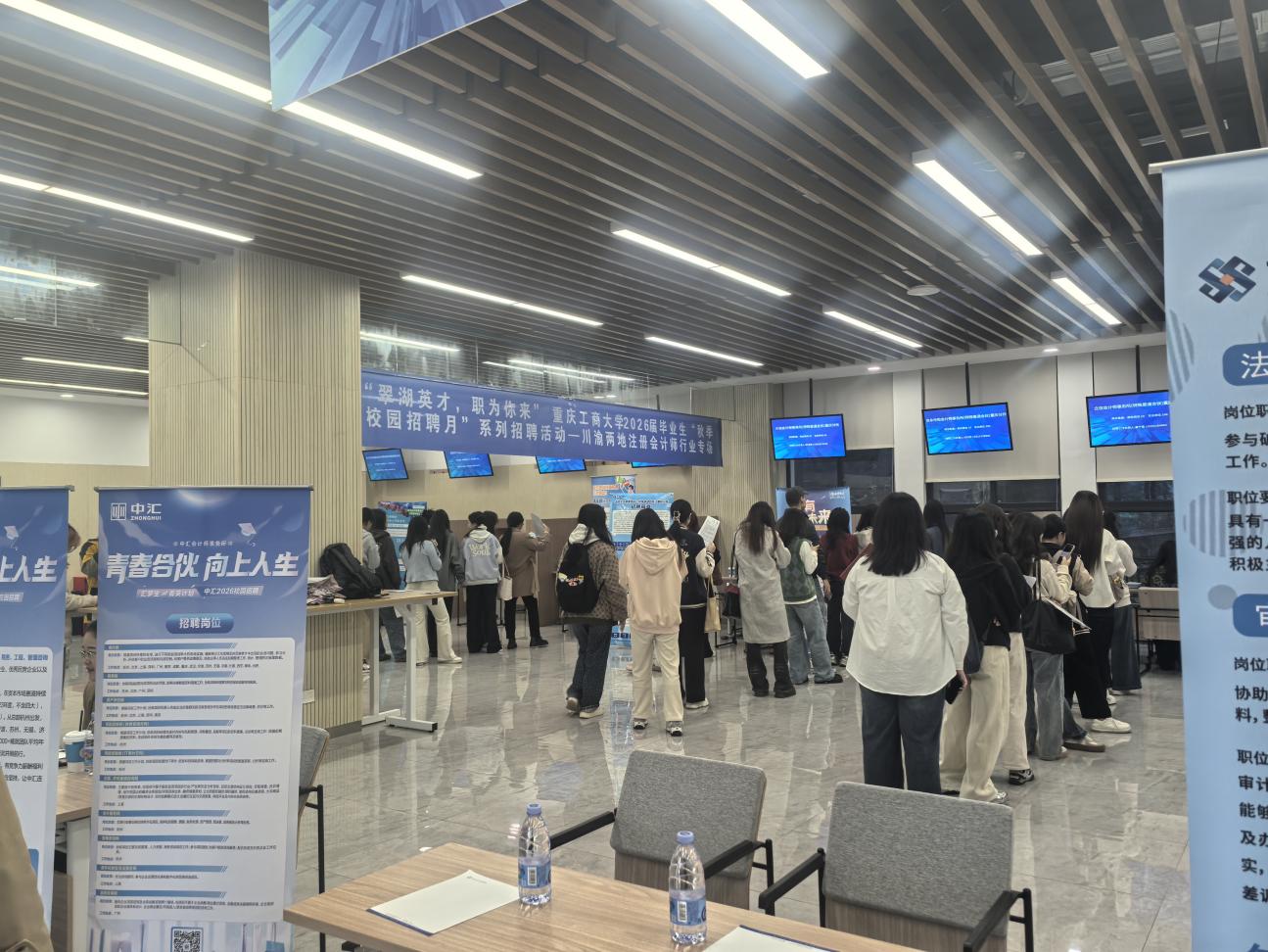 17318484270 为落实中央关于促进就业工作的相关政策精神,向注册会计师行业注入新鲜血液,10月29日上午,由重庆市注册会计师协会和四川省注册会计师协会联合主办、重庆工商大学会计学院承办的“翠湖英才,职为你来”重庆工商大学2026届毕业生秋季校园招聘川渝两地注册会计师行业专场招聘会在学校学生事务中心招聘大厅顺利举行。川渝两地33家会计师事务所到场招聘,提供就业岗位超1000个。重庆市注协办公室主任曾志勇、重庆工商大学会计学院党委书记邓德敏现场指导,约300余名同学到场参会。
