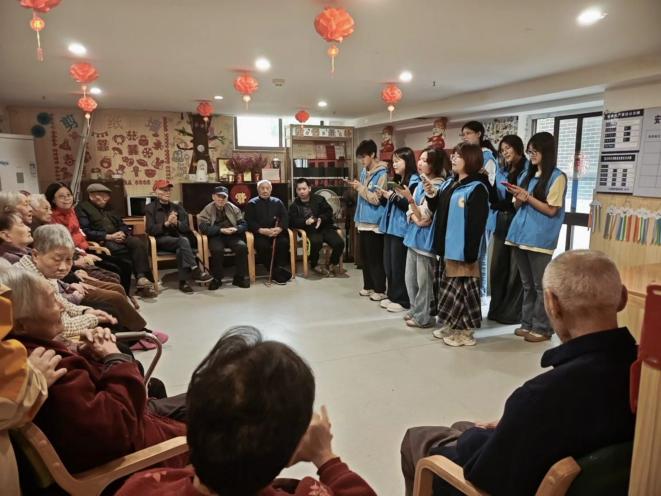 互动环节结束后,温情节目汇演温情启幕。志愿者们倾情演唱《唱支山歌给党听》《让我们荡起双桨》等经典红歌,悠扬婉转的旋律勾起老人们的时代记忆,舒缓的节奏传递着真挚情感,熟悉的曲调让老人们不禁跟着轻声哼唱,现场掌声此起彼伏,欢乐氛围持续高涨。
