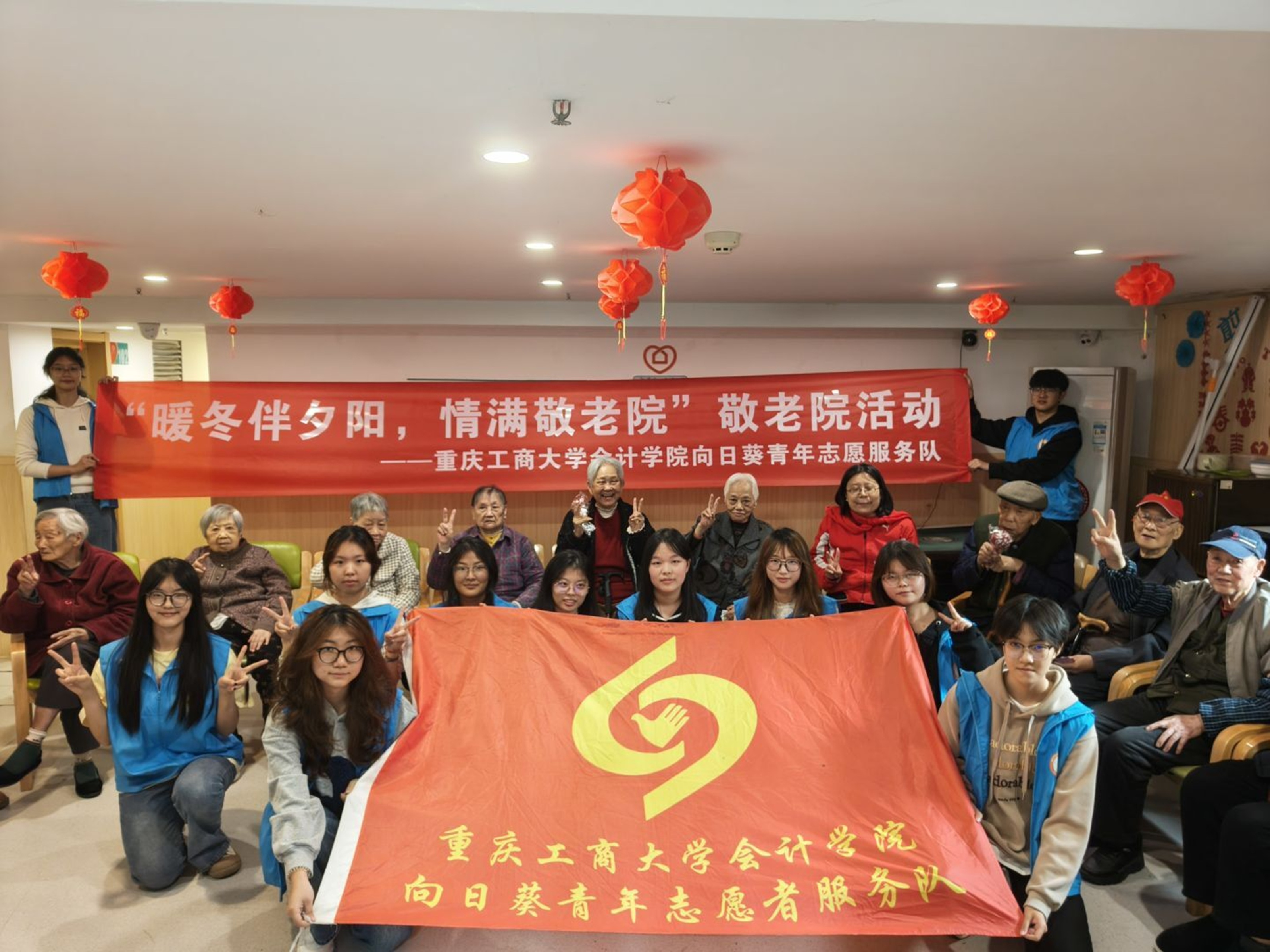 17318484270 为弘扬中华民族尊老敬老的传统美德,践行新时代青年的社会责任,2025年11月2日,重庆工商大学会计学院向日葵青年志愿者服务队走进重庆市渝中区曾家岩敬老院开展“暖冬伴夕阳,情满敬老院”敬老院活动,用真心互动驱散寒意,用耐心倾听慰藉心灵,让敬老院内暖意涌动、温情绵长。