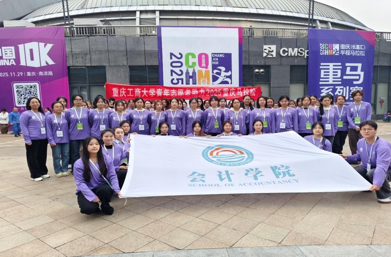 17318484270 为深入贯彻立德树人根本任务与“奉献、友爱、互助、进步”的志愿精神,2025年11月2日重庆工商大学会计学院组织91名志愿者参加重庆(长嘉汇)半程马拉松的志愿服务工作。旨在通过赛事服务平台,让学生在实践中增强社会责任感,提升服务社会的能力。