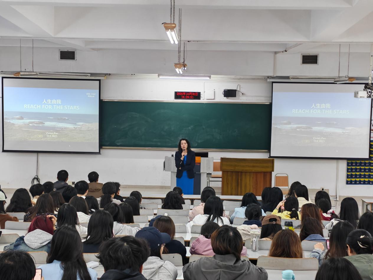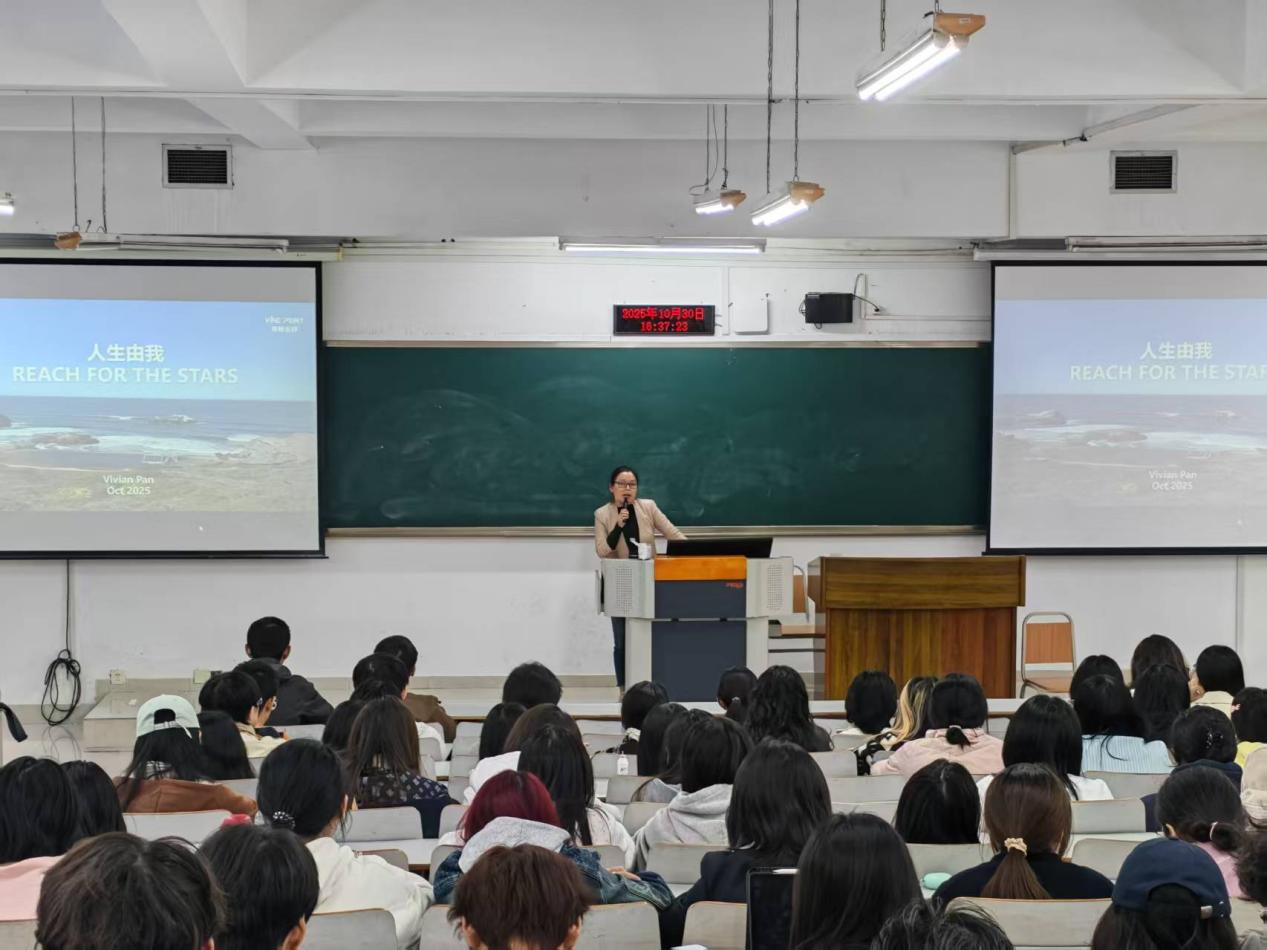 17318484270 为帮助学生避开“被替代”风险、找准职业突破口,寻找自我人生规划方向,10月30日16:30,会计学院国际教育中心在南岸校区博智07322教室举行“别让AI抢了你的饭碗”ACCA&CIMA专业方向班精英分享讲座。本次讲座由会计学院国际教育中心行政秘书张悯弱老师主持,特别邀请前德勤华西区HRD Vivian Pan(潘峥科)主讲,楷柏教育高校项目营运部班主任李春凤以及24和25级国际项目班全体同学参加。