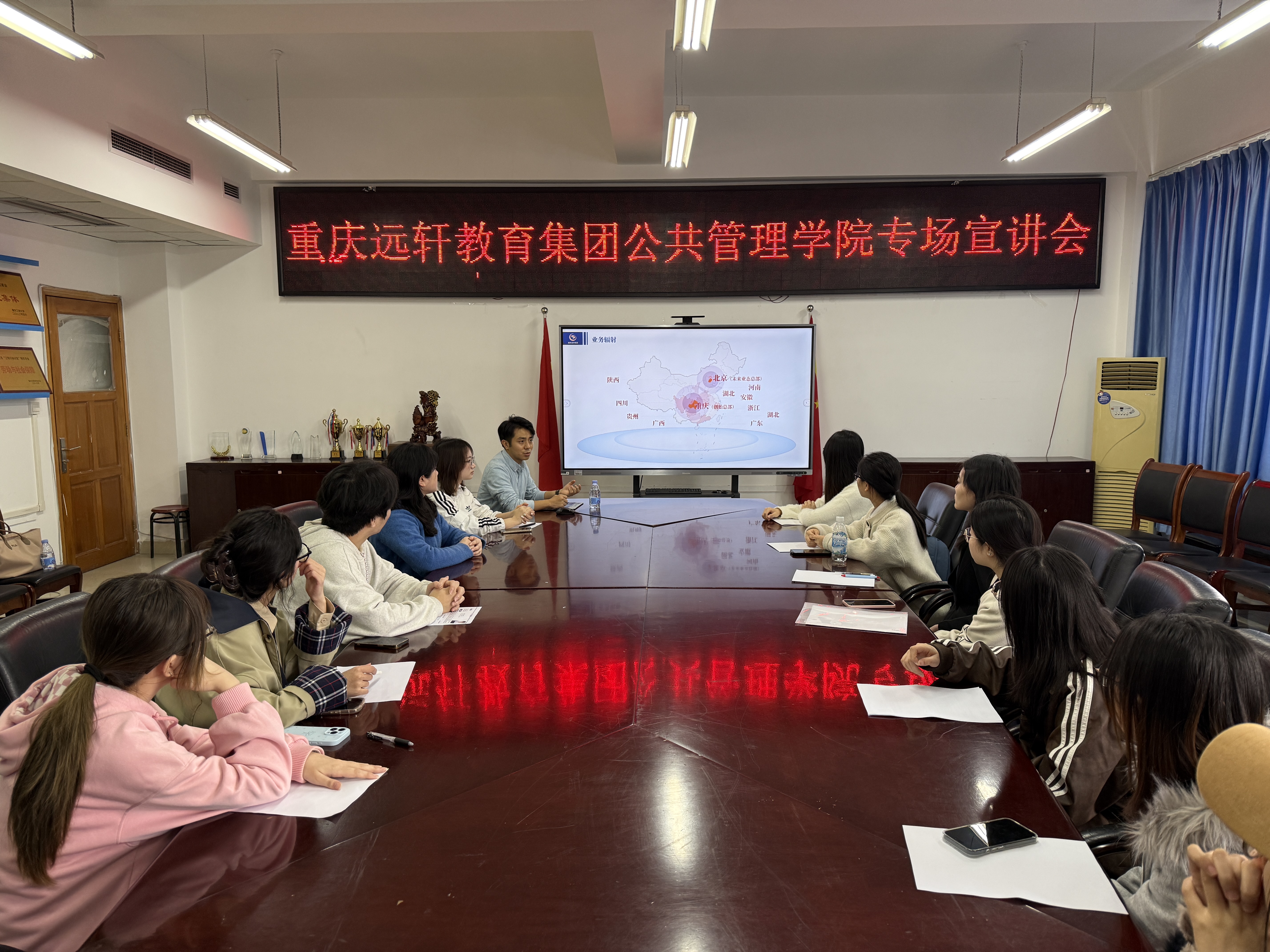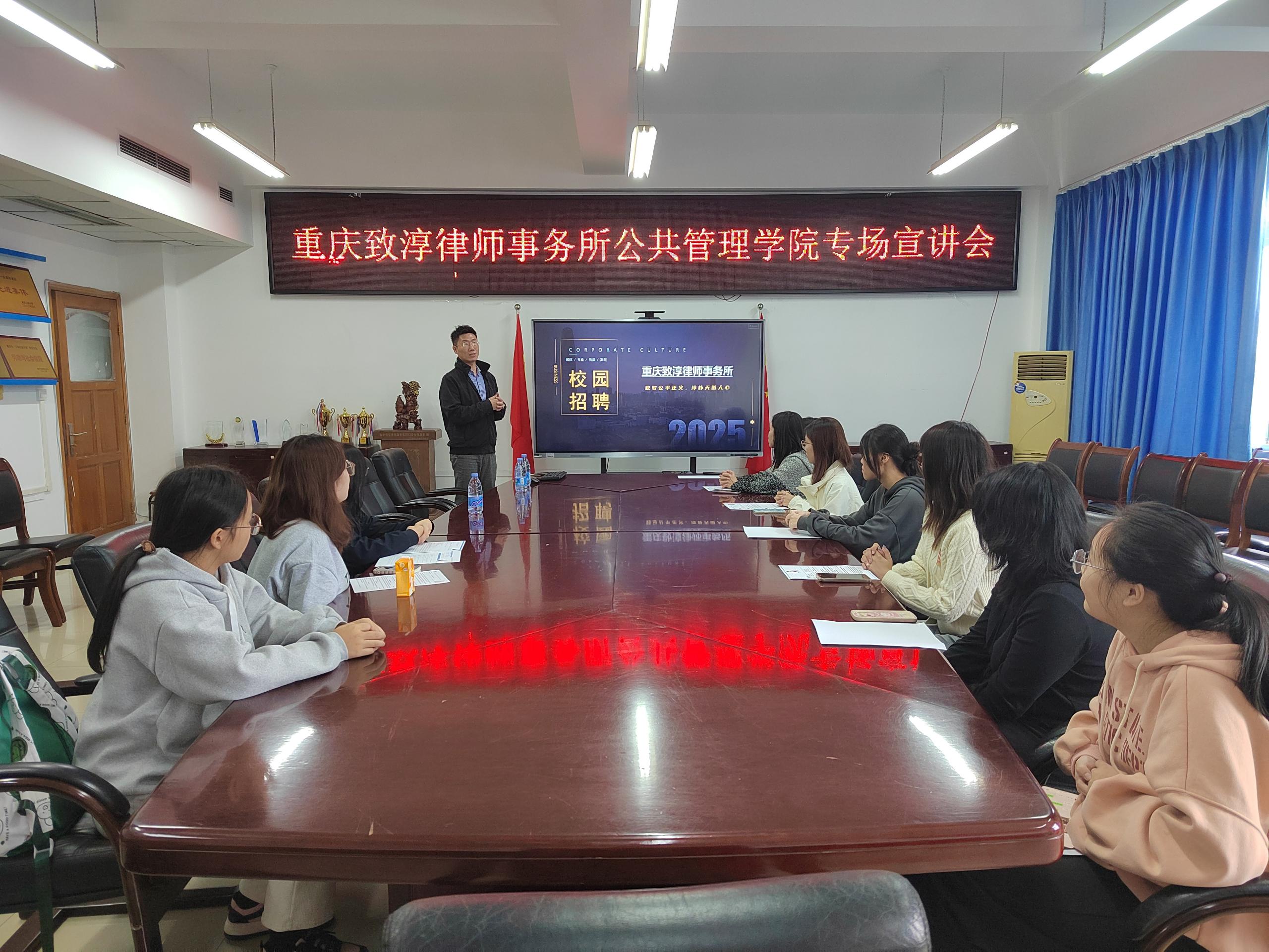 17318484270 为精准对接就业市场,助力2026届毕业生明晰职业方向,10月30日、10月31日重庆工商大学公共管理学院在启智楼81004会议室分别举办“重庆远轩教育集团”、“重庆至淳律师事务所”两场专场宣讲会,为学子搭建起与行业企业直接对话的平台。