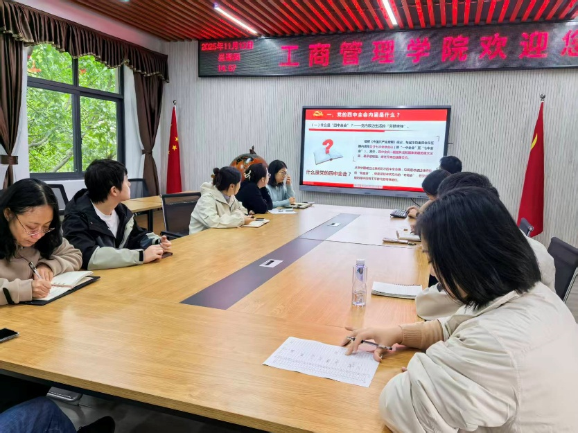17318484270 11月14日下午3点,工商管理学院教工第三党支部在明德楼4010会议室召开11月组织生活会,专题学习党的二十届四中全会精神。支部全体党员参加了学习活动,会议由教工第三党支部书记郝怡非主持并领学,学院党委书记陈亚惠同志参加会议并作交流发言。