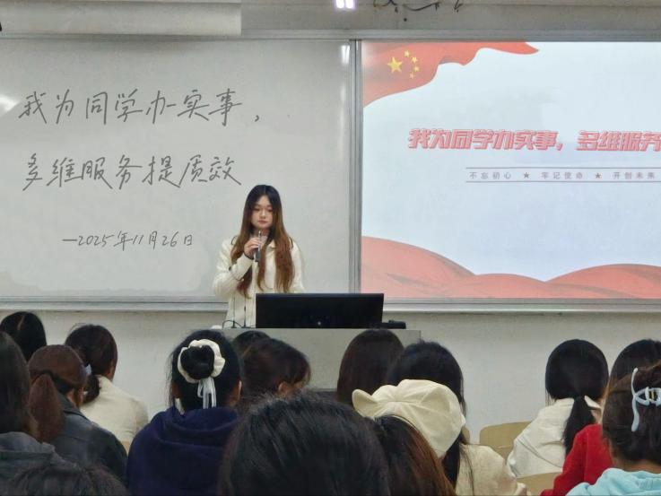 17318484270 为深入贯彻落实校团委关于服务同学、提升组织效能的培训精神,推动“我为同学做实事,多维服务提质效”实践活动走深走实,2025年11月26日,会计学院分团委学生会组织召开专题培训会,会议围绕如何“为同学做实事”、网络舆情应对处理、心理健康等方面展开系统讲解。会计学院分团委学生会全体成员参加了会议,会议由主席团成员龚诗宇主持。