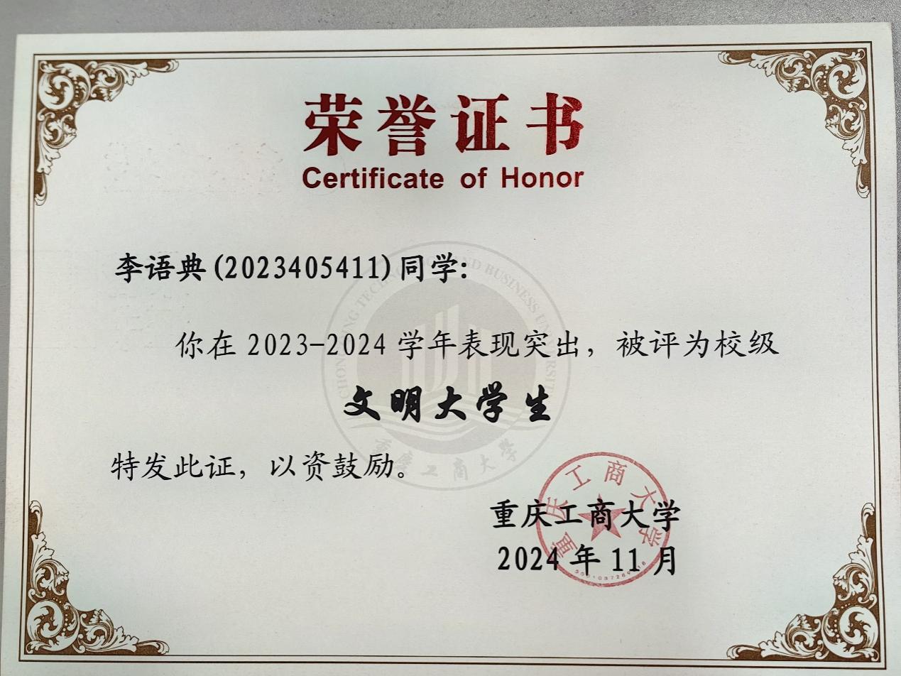 李语典,重庆工商大学会计学院2023级会计学3班学生。自入学以来,她在学业与公益的双赛道上齐头并进:学术上,凭借扎实的专业素养获获校级综合奖学金、科创奖学金等;在组织活动中,她因卓越的组织能力和奉献精神,获评优秀学生干部、志愿服务活动先进个人、文明大学生等10余项荣誉称号。她在知识汲取与爱心奉献间找到平衡点,让大学生活既充满书香底蕴,又洋溢着温暖的社会价值。