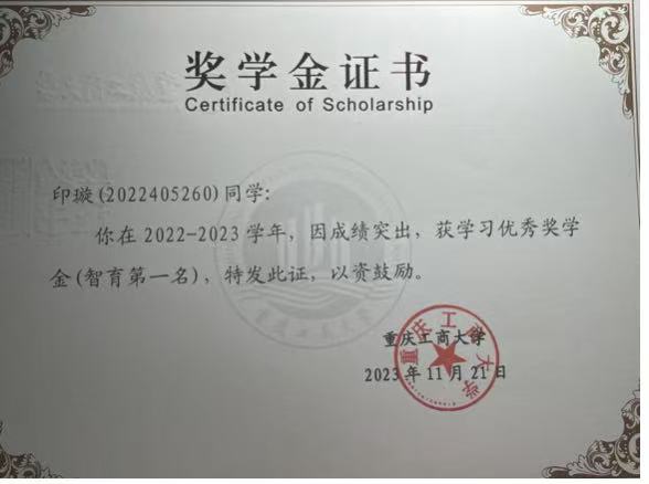 印璇始终秉持“学以致用、知行合一”的学习理念。她专注学业,勤奋刻苦,综合素质评价连续位居班级前列,多次荣获校级奖学金。她注重理论与实践相结合,积极参与学科竞赛,曾获全国大学生英语阅读竞赛三等奖、“外研社·国才杯”校赛一等奖等荣誉。她认为,学习不仅是知识的积累,更是能力的锻造。她鼓励同学们合理规划时间,善用学习资源,勇于挑战自我,在不断探索中实现成长与突破。