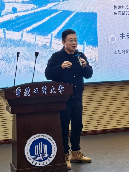 重庆工商大学校友会副会长何军作总结讲话。他表示,多年以后回顾大学生活,才会意识到那段能够心无旁骛地学习、探索,甚至试错的日子,是多么宝贵而幸福。他鼓励在场同学,“接纳不完美的自己,保持情绪稳定与学会尊重”。既要胸怀远志,更要全心沉浸并珍惜当下的校园生活——主动汲取知识,大胆尝试方向,深度参与实践,珍视同窗情谊,让这段时光因充实而无憾。