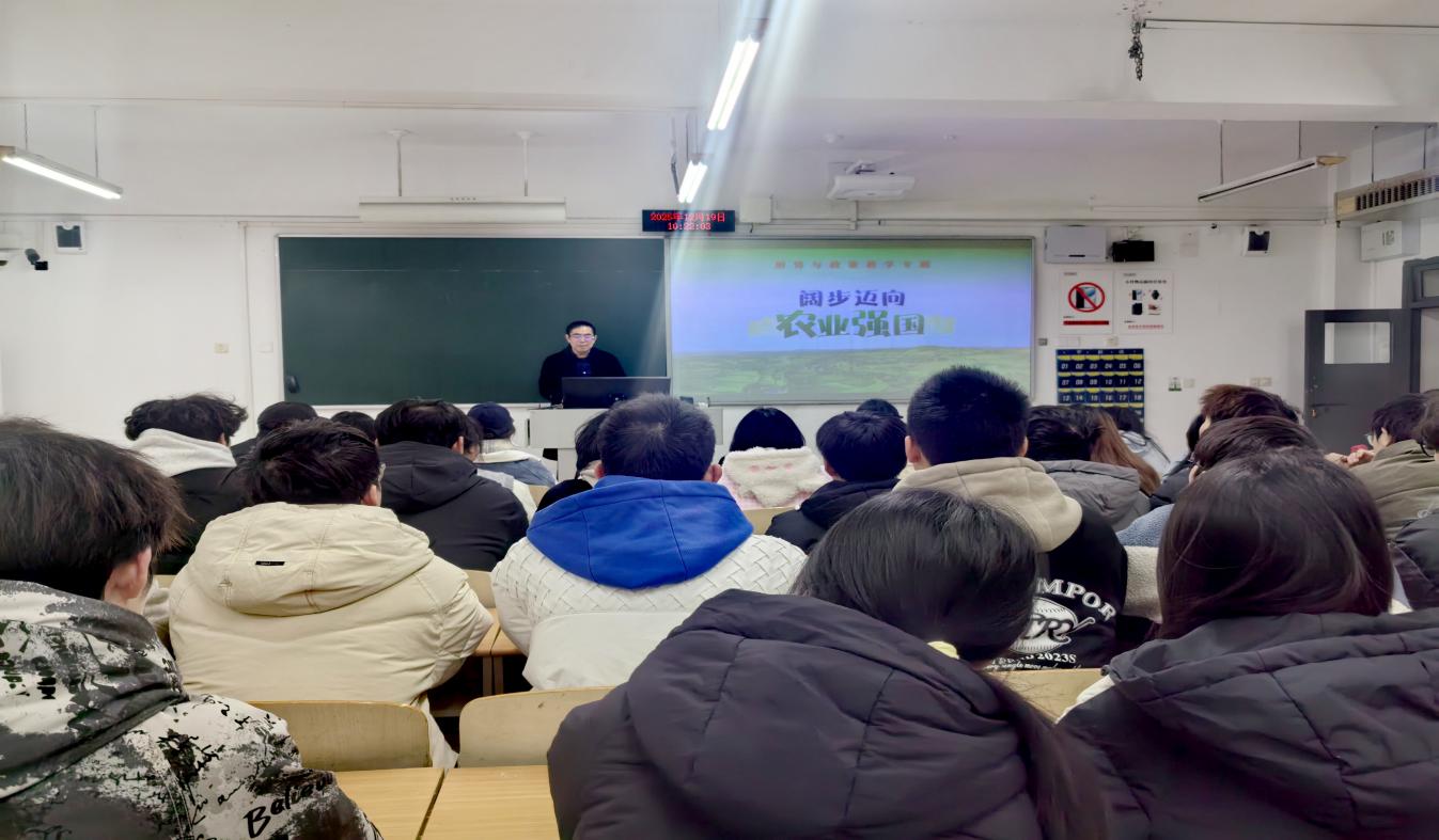 17318484270 12月19日上午,我校党委常委、副校长田双全教授在博智楼07204教室为2024级城市管理专业本科生讲授形势与政策课,聚焦“阔步迈向农业强国”主题,解读我国农业现代化发展路径与新时代农业战略部署。