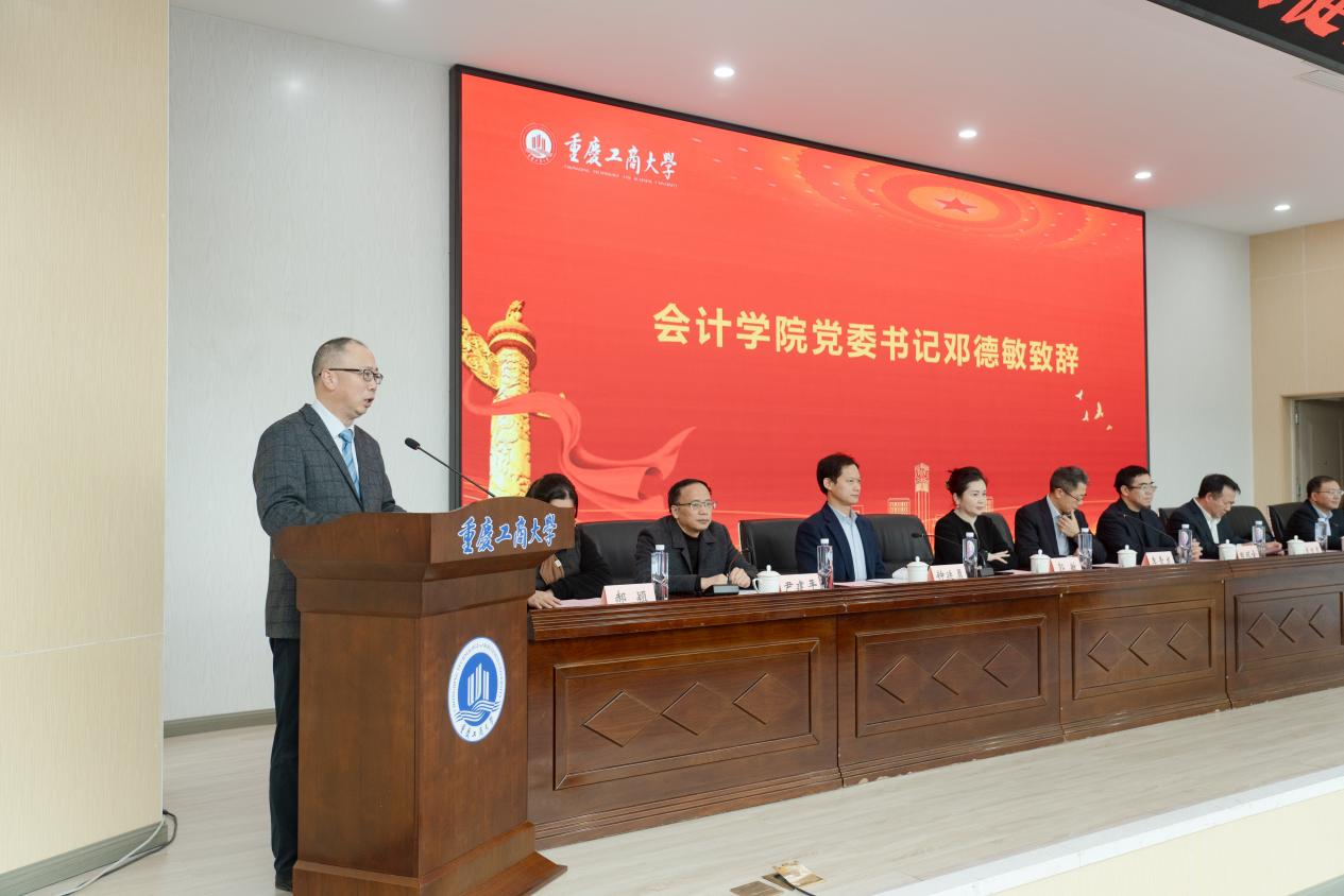 会计学院党委书记邓德敏首先致辞,他深情回顾了会计学院与天健会计师事务所重庆分所三十余年来的合作情谊,对天健长期以来在实习实践基地建设、建立联合培养人才的订单班、合作培育国家级教学成果奖、建立优质就业基地、捐赠奖教(学)金等方面深度参与学院教育教学改革,助推学院事业发展的善举等表示诚挚感谢,希望双方在未来能进一步深化校企合作,共同探索产教深度融合的新形态合作模式。同时,他寄语同学们要常怀感恩之心、恪守奋进之志、勇担时代之责,以真才实学服务社会,以奉献精神回馈关爱。