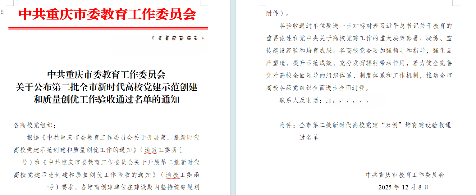 17318484270 近日,中共重庆市教育工委下发文件,工商管理学院党委教工第三支部顺利通过第二批全市新时代高校党建示范创建和质量创优工作验收,标志着支部“双创”培育建设取得阶段性成果。验收以来,支部坚持以高质量党建引领事业发展,聚焦立德树人根本任务,围绕中心、服务大局,持续强化政治功能和组织功能,推动党建与教学科研、人才培养、管理服务深度融合。支部以制度建设夯基、以品牌活动聚力、以示范引领提质,常态化开展理论学习、主题党日与实践服务,持续提升党员教育管理水平和支部凝聚力战斗力。下一步,教工第三支部将以通过“双创”验收为新起点,持续对标新时代高校基层党建要求,总结推广经验做法,巩固创建成果,推进党建工作提质增效,为学院高质量发展和学校事业进步提供坚强组织保障。
