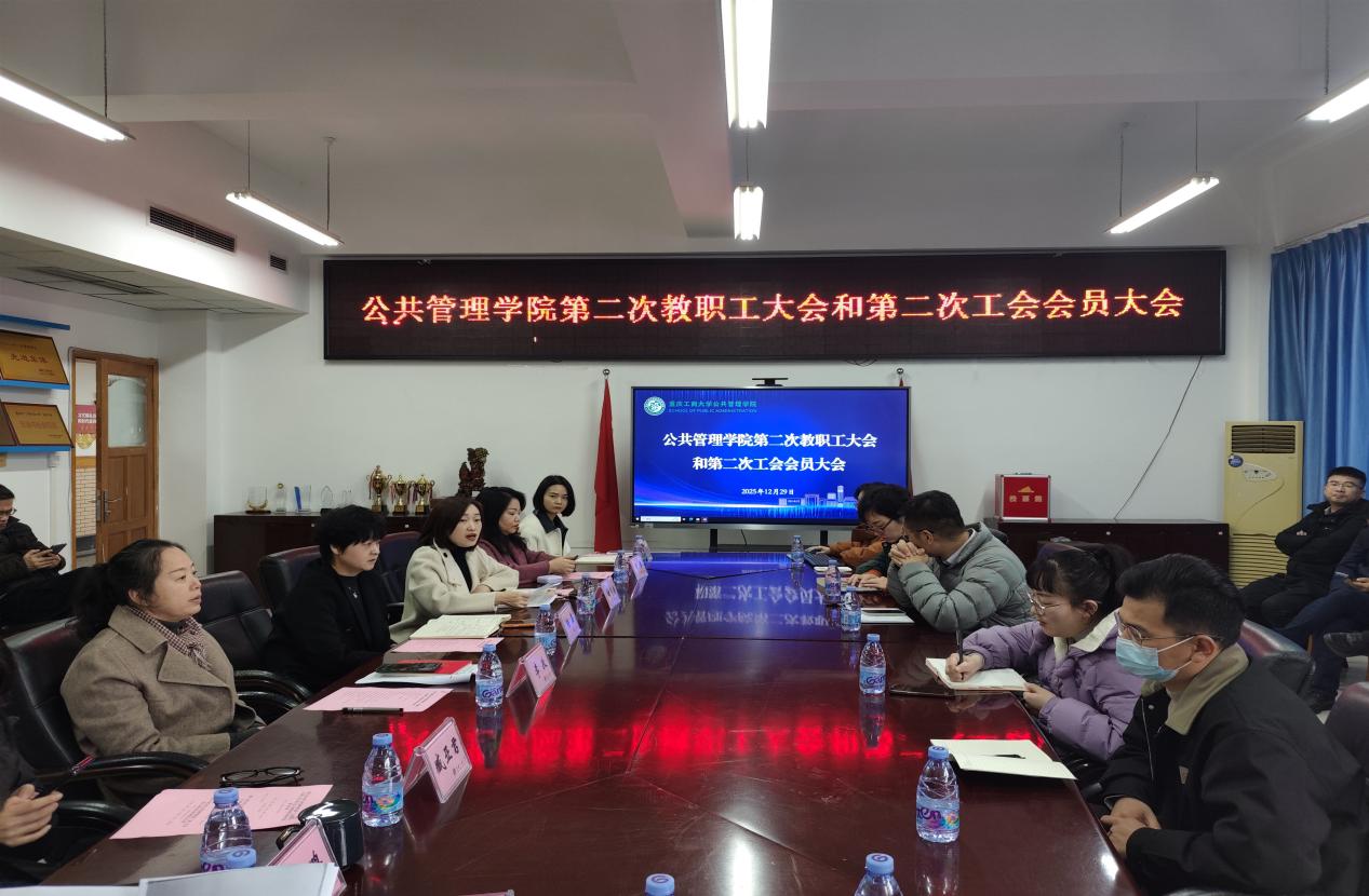 17318484270 2025年12月29日,重庆工商大学公共管理学院第二次工会会员代表大会在启智楼81004会议室隆重举行。本次大会由学院党委副书记、纪委书记谢书楠主持,全体教职工代表参与会议。