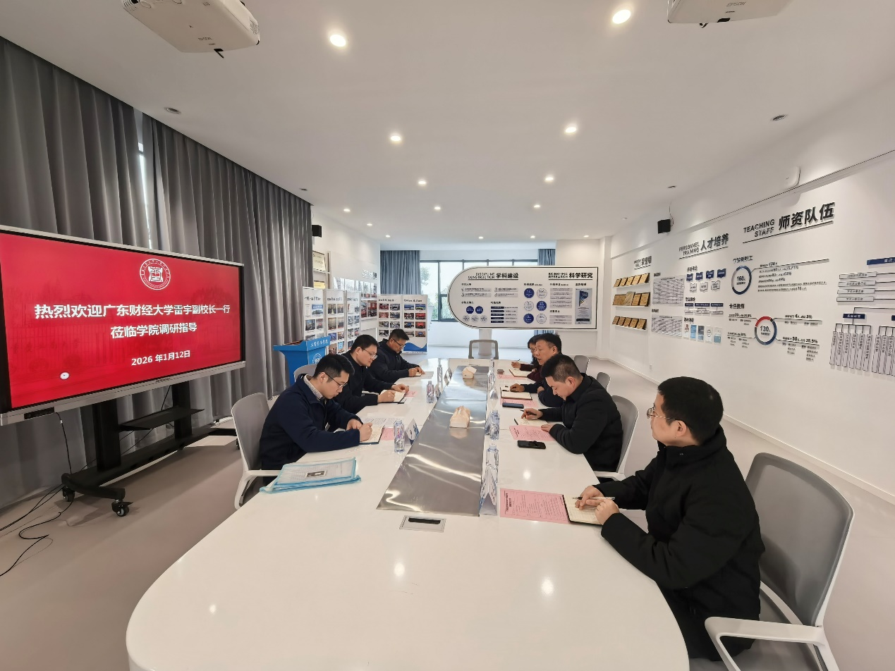 17318484270 2026年1月12日,广东财经大学党委常委、副校长雷宇带领工商管理学院院长马宗国、副院长卢岳来我院开展专题调研交流。我校党委常委、副校长杨柏以及工商管理学院院长陈伟、副院长邱继勤、科研与学科办主任王永龙参加了调研座谈会。会议由工商管理学院院长陈伟教授主持。