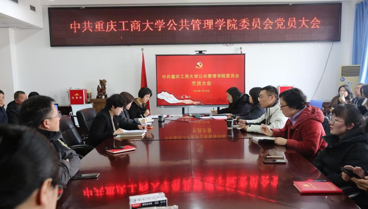 17318484270 2026年1月14日,重庆工商大学公共管理学院党员大会在学院1004会议室隆重召开,顺利完成党委、纪委(简称“两委”)换届选举各项工作。学院党委书记陆嘉主持会议,全体党员同志参会。