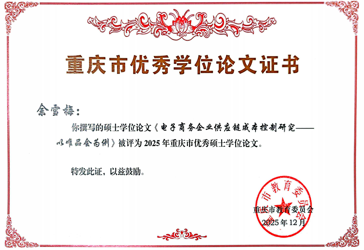 17318484270 近日,重庆市学位委员会、重庆市教育委员会正式公布了2025年重庆市优秀硕士学位论文评选结果。我院2021级会计学学术型研究生张宇、2021级会计专业学位(MPAcc)研究生余雪梅撰写的学位论文双双入选,荣获“2025年重庆市优秀硕士学位论文”。此次学硕与专硕论文同时获奖,标志着我院研究生分类培养质量迈上了新台阶。