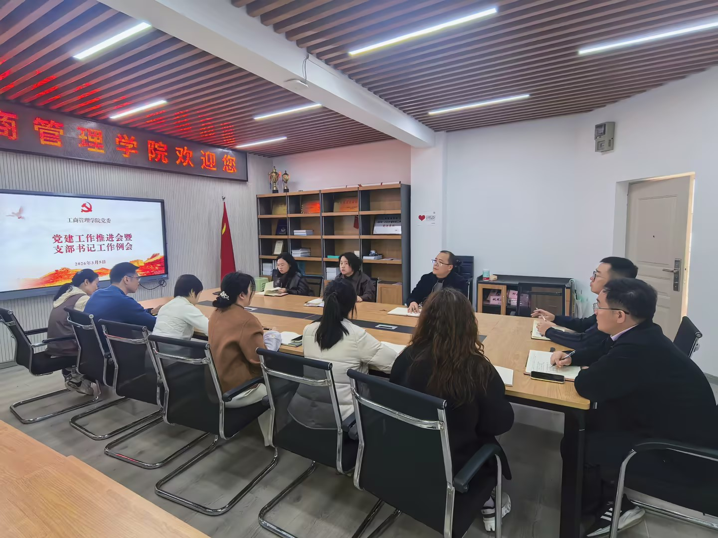 17318484270 为深入学习贯彻习近平新时代中国特色社会主义思想,扎实推进学院党建工作标准化规范化建设,明确年度党建重点任务,3月5日中午,工商管理学院在明德楼 4010 会议室召开党建工作推进会暨支部书记工作例会。学院党委书记陈亚惠主持会议,党委副书记程亚、组织员陈向军、各支部书记参加会议。