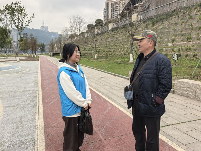 文明劝导,润心无声。志愿者们在开展河岸垃圾清理的同时,密切关注过往市民与游客的行为,将文明引导与环保宣传深度融合。发现乱丢垃圾、踩踏草坪、遛狗不牵绳等不文明行为时,志愿者们始终面带微笑,以礼貌温和的语言主动上前劝导,既耐心指出 不当行为 ,又细致讲解环保理念与文明公约,用以理服人、以情感人的方式,让劝导更有温度。一位带孩子的母亲在志愿者提醒后,主动将零食袋投入垃圾桶,还由衷称赞:“你们做得很好,给孩子们做了个好榜样,我们以后也会更注意。”这样的暖心互动,让文明劝导成为一堂生动的现场环保教育课,不仅赢得了广大市民的理解与配合,更有效带动周边群众增强环保意识,让文明护岸的理念深入人心。