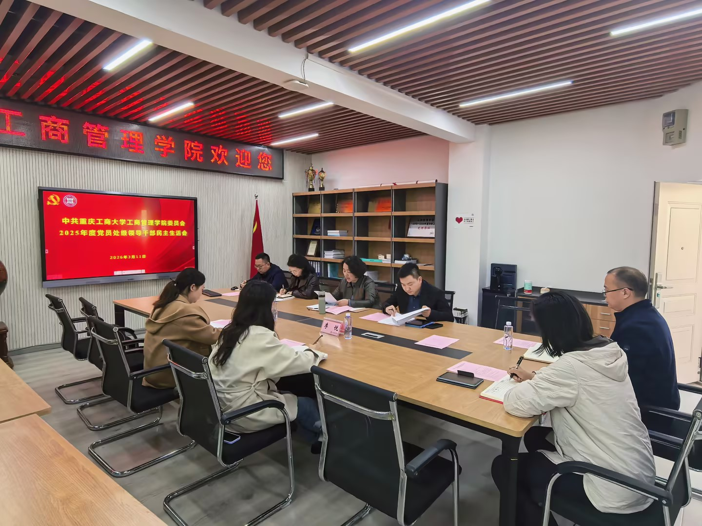 17318484270 按照学校党委统一部署,3 月 11 日,工商管理学院在明德楼 4010 会议室召开 2025 年度党员处级领导干部民主生活会。学院党委书记陈亚惠主持会议,全体党委班子参加会议,学校督导组成员蒋欣然、李悦到会指导。
