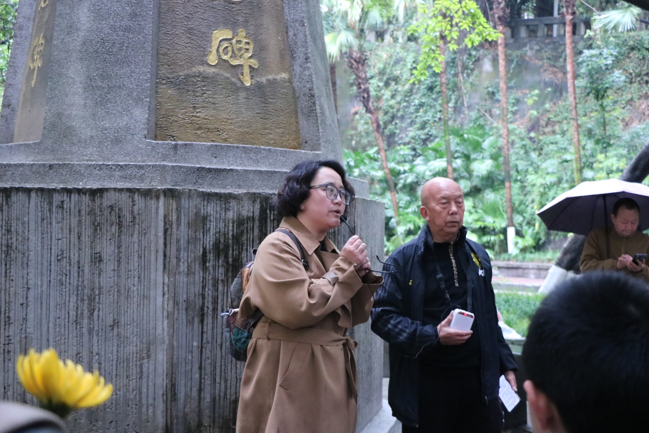 在邹容烈士纪念碑前,全体人员肃立致敬,敬献鲜花,缅怀英烈。邹容曾孙邹小谷亲临现场,讲述先辈求学救国、撰写《革命军》的感人事迹,让青年学子在历史现场感悟信仰力量。