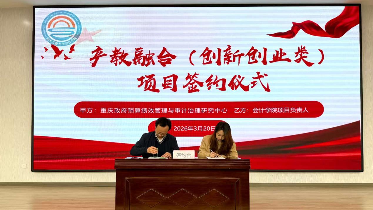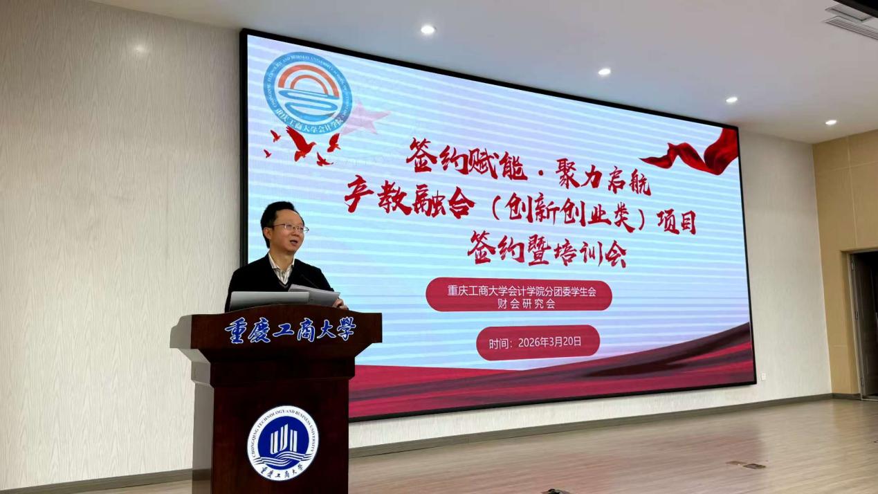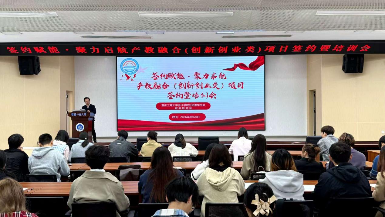 17318484270 为积极深化产教融合,进一步提升广大同学的创新创业意识与实践能力,2026年3月20日,会计学院在明德楼1019举行产教融合(创新创业类)项目签约仪式暨培训会。学院党委副书记、纪委书记郝颖,会计学院学科建设办公室主任、重庆市政府绩效评价研究中心副主任杨兴龙,会计学院辅导员郑志欣,十支重点项目的团队成员及代表参加。
