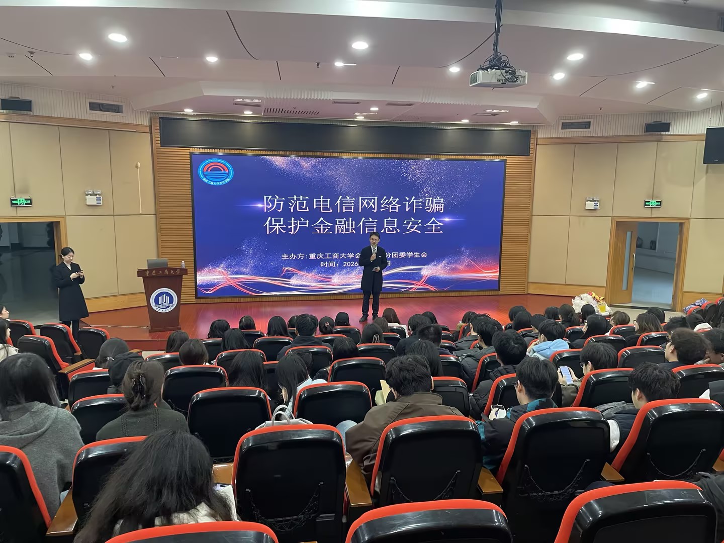 17318484270 为进一步提升大学生的金融风险防范意识,筑牢校园安全防线,3月19日下午,中国工商银行重庆自由贸易试验区分行“反诈进校园”系列宣传活动走进重庆工商大学会计学院。本次活动旨在将金融安全知识送入校园,帮助同学们认清诈骗套路,守护个人财产与信用安全。