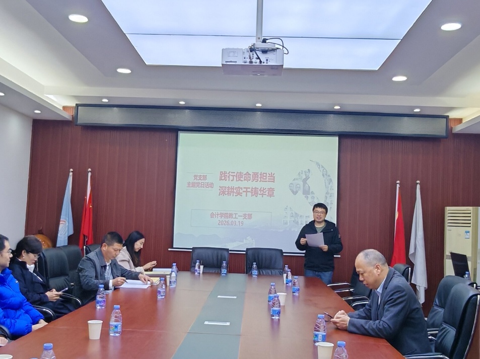 17318484270 2026年3月19日,会计学院教工一支部在明德楼2019会议室召开以“践行使命勇担当,深耕实干铸华章”为主题的组织生活会暨主题党日活动。活动由支部书记蒋弘主持。