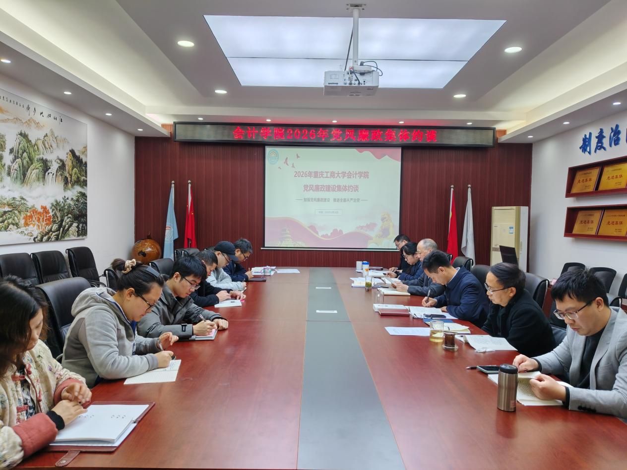 17318484270 为扎实推进树立和践行正确政绩观学习教育,进一步强化党员干部廉洁自律意识、筑牢廉洁自律思想防线,持续抓好作风建设,2026年3月24日,会计学院党委召开2026年党风廉政建设集体约谈会。学院全体领导班子、系主任、科级干部及党支部书记参加了此次会议。会议由学院党委副书记、纪委书记郝颖主持。