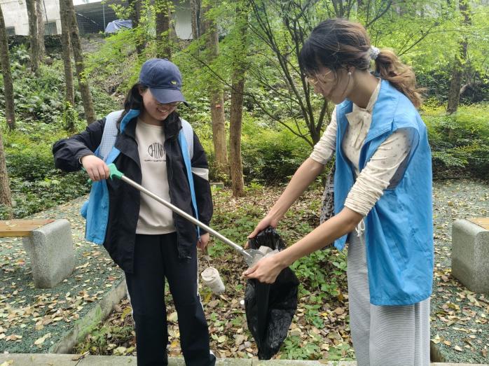 14:00,志愿者们准时在南岸校区校前广场集合。活动开始前,负责人细致划分清洁区域,强调在全面清理垃圾的同时,要做好山体植被保护,保障活动安全、有序、高效开展。随后,志愿者们手持垃圾夹、垃圾袋等工具,沿龙脊山步道开展地毯式清洁行动,重点捡拾步道两侧的塑料瓶、食品包装袋、烟头等垃圾,对草丛深处的白色污染进行彻底清理,不放过任何一处卫生死角,以实际行动守护山林环境。