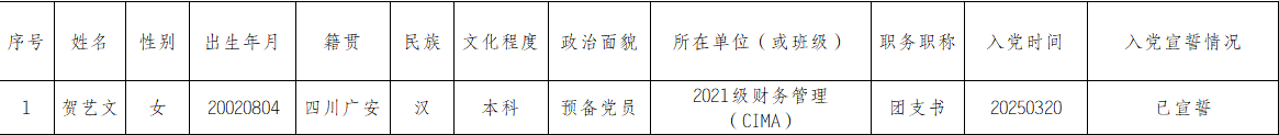 17318484270 根据《中共重庆工商大学委员会发展党员工作实施细则》有关规定,经 会计学院 党委审核,拟讨论下列预备党员转正问题,现将有关情况公示如下: