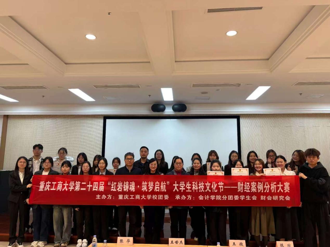 17318484270 为落实立德树人根本任务,推动财会专业应用型人才培养,2026年3月26日下午,重庆工商大学第二十四届“红岩铸魂·筑梦启航”大学生科技文化节财经案例分析大赛决赛在图书馆视听阅览室顺利举行。校团委书记王微、会计学院党委副书记郝颖、会计学院财务系主任王世杰、会计学院研究生教育中心主任陈欢、财务系教师张华出席了活动,担任此次比赛的评委。