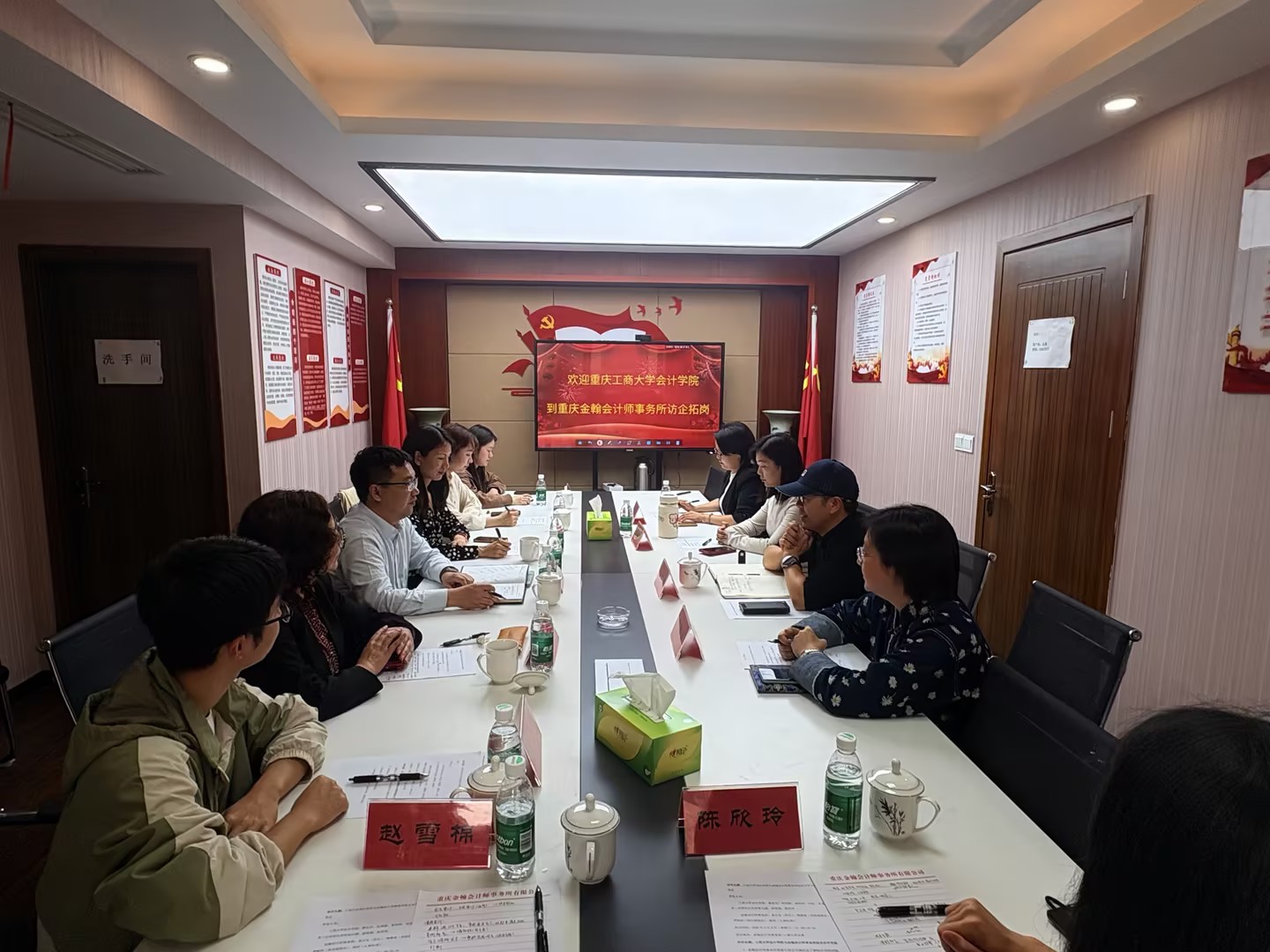 17318484270 为推动本、研学生就业工作,深化产教融合、推进校企协同育人,2026年4月8日下午,重庆工商大学会计学院赴重庆金翰会计师事务所有限公司访企拓岗并开展研究生教育合作交流座谈会。